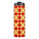 Adicione um toque de elegância e tradição com este padrão geométrico floral de ouro sem costura num fundo vermelho rico. Perfeito para ocasiões festivas, designs inspirados na Ásia, embalagens de luxo, convites, têxteis e decoração doméstica. O intricado motif floral lotus e as cores ousadas o tornam ideal para celebrações, casamentos e temas culturais.