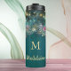 Uma ilustração com uma aquarela esbranquiçada da folhagem esmeralda verde, realçada com cor rosa, fúcsia, mauve e matizes roxas, brilha com luzes de fadas e um toque de poeira mágica. Essa garrafa de água monográfica personalizada encantadora apresenta um tema de floresta encantado com um delicado quadro de rosas em rosa, roxo e mauve e um monograma clássico, além de um modelo para o nome em caligrafia bonito. Esta elegante e moderna garrafa de água personalizada é perfeita para um aniversário de conto de fadas, chá de panela, chá de fraldas ou casamento, um presente de Natal para a mãe, a vovó ou o seu melhor amigo, ou um presente de aniversário, ideal para aqueles que adoram um cenário mágico de floresta, temas de jardim de fadas, ou a beleza eterno do verde esmeralda, mauve e ouro.