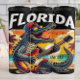 Este gráfico vibrante mostra um legal jacaré, vestindo um boné vermelho de beisebol e óculos escuros do arco-íris, destruindo um violão elétrico. Contra um pôr do sol pitoresco da praia da Flórida com palmeiras e pássaros voadores, o texto ousado "FLORIDA" completa essa design brilhante, inspirada em rock-and-roll, combinando perfeitamente imagens icônicas de estado com talento musical.