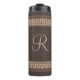 Meander Elegant, design de ornamento de fronteira da Grécia clássica com monograma e listras geométricas em fundo castanho escuro. Excelente de presente para os aniversários, Natal ou só para surpreender o seu amado. É fácil personalizá-lo e mudar a cor de fundo para adicionar outro ao design com sua escolha.