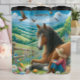 Esta cena pacífica e idílica retrata uma jovem que veste uma palha que se senta ao lado de um cavalo grande, gentil, castanho e branco, deitado num campo, repleto de flores silvestres coloridas. As colinas verdes em movimento esticam-se até a distância sob um céu azul brilhante, pontilhado com nuvens fofinhas, pássaros em chamas e borboletas em flauta, criando uma imagem serena e animadora de companheira e natureza.