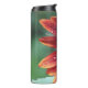 Girassol vermelho gordo, rico, borrifado com gotas de chuva contra fundo verde