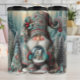 Esta ilustração de Natal encantadora apresenta um maravilhoso gnomo de Natal com uma barba branca longa e um chapéu pontiagudo, intricadamente padronizado. O gnomo está segurando um pequeno globo de neve com um dentro de casa festiva. A cena é colocada numa floresta de inverno nevada, criando uma atmosfera quente e mágica e aconchegante para a temporada de festas.
