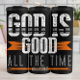 This powerful design declares "GOD IS GOOD ALL THE TIME." "GOD IS" features a distressed white texture, while "GOOD" is prominent with an orange gradient and textured arrows. "ALL THE TIME" anchors the bottom in a bold, clean font, creating a strong statement of unwavering faith.
