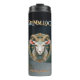 Take Grimmloch on the go with this thermal travel tumbler, featuring the official emblem of the narrative-based RPG by Opulent Code LLC. The detailed horned goat crest, paired with rich teal and gold tones and full Grimmloch branding, creates a bold vertical design that stands out beautifully.