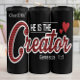 This powerful design proclaims "HE IS THE Creator Genesis 1:1." "Creator" is beautifully rendered in a bold script with a red plaid pattern and white outline. Accompanying red hearts emphasize divine love, perfectly capturing the essence of God as the ultimate Creator from Genesis.