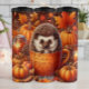 Esta ilustração encantadora do outono apresenta um ouriço bonito, enfiado em dentro, um grande e intricado teacup. A cena acolhedora é cheia de abóboras, folhas coloridas de queda e outros decores festivos como varetas e velas de canela, criando um tributo quente e charmoso à estação de outono.
