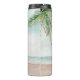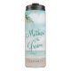 Cena de praia pintada por brisa de ilha, com Ondas de Oceano, praia de Sandy e Palm Trees, com um belo céu azul-lacrimogênio. Com Fontes Modernas De Script De Tipografia. Uma praia Tropical de Verão, ou design de casamento de destino - Mãe Personalizada do Tumbler Térmico de Groom! Veja meu compro para ver a suíte de casamento inteira para este design!