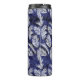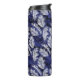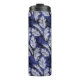 Folhas brancas de palma sobre fundo azul-indigo, em camadas com mais frondes de palmeiras azuis.