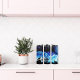 Dois lobos uivam em lua azul, na noite. Excelente de presente para amantes de lobos