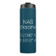 Tumbler térmico com coordenadas de mapa de latitude e longitude para a estação aérea naval norte-americana NAS Jacksonville no estilo Flórida Roboto, em fundo azul Marinho.