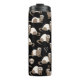 Hand-drawn ferrets, xoxo and hearts pattern thermal tumbler, black background.