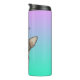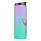 Ilustração de cachorro Chihuahua fofo com olhos grandes. A citação no verso da caneca diz, "Mãe Orgulhosa de Chihuahua", mas você pode personalizá-la para dizer o que quiser. Gradiente de roxo para azul-turquesa.