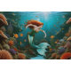 "Marielle" - Linda Sereia Dançante. Balé aquático: Nessa imagem mesmerizante, uma maravilhosa sereia com danças de cabelo vermelho fluindo graciosamente no fundo do mar, seu rabo de peixe verde e azul cintilante na água. Cercada por um jardim submarino de peixes e corais, ela parece estar se movendo para o ritmo das atuns aquáticos gentis. A cena, cheia de sutis matizes multicoloridos, captura a serena, a beleza fluida desta estilizada arte Pré-Raphaelita. Vocês já viram uma dança da sereia tão elegante no fundo do mar azul?
