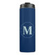 Um moderno e elegante tumbler térmico azul com um Monograma personalizado. Basta clicar em "Personalizar esta modelo" para alterar o Monograma e os detalhes no verso.