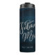 Marinho Luster Dark Blue Watercolor Design, com tipografia Silver Sparkle e bela textura de fundo de aquarela. Com Fontes Modernas De Script Chic. Uma moda e estilo luxuoso - Monograma personalizado Futuro, Sra. Tumbler Térmica! Veja meu compro para ver a suíte de casamento inteira para este design!