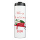Feliz Natal Tree Red Vintage Wheelbarrow Tumbler Térmico. Desenho de roda de Claudine Boerner.