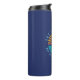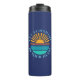 Um modelo de foto redondo sobre fundo azul escuro. Clique em personalizar para alterar o pôr do sol para a sua própria imagem, e o texto para si próprio, ou comprar-o como está.