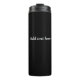 Tumbler preto com texto branco, pronto para personalizar. Adicione seu próprio texto.