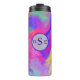 Colorido, brilhante, e original, este tumbler da bebida é personalizado apenas para você! A cor azul, vermelha, roxa, cor-de-rosa e do ouro é colocada sobre se em um estilo artístico da pintura para fazer um fundo abstrato. Seu monograma três inicial no azul é colocado então dentro de uma luz - bandeira do círculo das cinzas azuis. Divertimento!