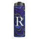 Crie o seu próprio monograma de tumbler térmico para ela. O fundo da arte digital apresenta azul empoeirado, índigo, roxo, marinho, azul real e dourado, arte digital geode. Use um estilo de fonte diferente conforme necessário ou adicione um nome específico.
