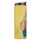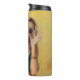 Garrafa Térmica Mulher em bralette azul segurando óculos de sol co