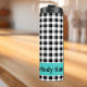 Stylish 12oz thermal tumbler featuring a black & white buffalo check pattern and turquoise accent frame for you to personalize. Change text to make it yours using the simple Template provided. Stainless body, plastic lid. Vacuum-sealed double walled construction retains temperature, hot or cold. Awesome gift for family, friends, actually-- anyone. See "About This Product" at side for more information and care.