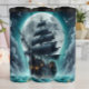 Esta ilustração sombria e atmosférica representa um navio pirata fantasmagórico com velas estonteadas navegando num mar azul escuro e instável sob uma grande lua de cheio pálida. O navio está rodeado de turbilhões, nuvens sinistras e alguns pássaros voam no céu. Lanternas do navio emitem um brilho fraco, acrescentando à misteriosa e ligeiramente assustadora cena náutica.