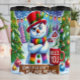 Esta ilustração engraçada e sarcástica mostra um boneco de neve com uma expressão rabugenta e braços cruzados. Ele segura uma caneca que diz 'CONGELAR VOCÊ', com um cartaz na neve que declara, 'ALGUNS DE NÓS NÃO SE MELHORAM SOB PRESSÃO'. A cena, encurralada numa terra maravilhosa de inverno, captura um humor de feriado humorístico e desafiador.