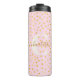 Mantenha-se elegante e hidratado em movimento com esta caneca de viagem rosa e dourado personalizada com bolinhas. Com um design de monograma chique e um padrão pontilhado divertido, este copo isolado mantém suas bebidas quentes ou frias enquanto adiciona um toque de elegância à sua rotina diária. Um presente perfeito para amantes de café e profissionais ocupados!