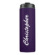 O Simple Script Custom Name Purple Thermal Tumbler é um acessório personalizado para bebidas, na moda e personalizado, projetado para manter suas bebidas quentes ou frias. Sua cor roxa vibrante, o recurso personalizável de nome e o isolamento térmico fazem dele o companheiro perfeito para se manter hidratado em qualquer lugar.