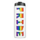 Este design colorido apresenta a palavra Pride criado com um arco-íris.