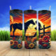 Uma cena artística serena de uma cowgirl e seu cavalo se silenciaram contra um pôr do sol atordoante em um campo rural cheio de flores silvestres. O céu da hora de ouro pinta um pano de fundo tranquilo sobre a pacífica paisagem ranhosa, com sombras suaves esticando-se através da paisagem pastoral. Esta bela composição captura a liberdade e a força silenciosa do estilo de vida ocidental, misturando a natureza e o encanto rústico em perfeita harmonia. A luz quente do sol se filtra através da cerca e dos campos abertos, evocando um senso de calma e conexão entre a vaqueira, seu cavalo, e o mundo natural ao seu redor.