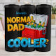 Este gráfico humorístico apresenta o "PAI NORMAL" em texto laranja em negrito, posicionado sobre um clássico refrigerador vermelho, brimando com gelo e garrafas verdes e amarelas refrigeradas. Abaixo, a palavra "COOLER" em azul gelado captura perfeitamente a vibração relaxada. Este design celebra um espírito casual e amoroso pai e seu papel essencial para manter as coisas legal.
