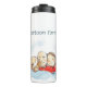 Este frasco ilustra um filhote fofo e seus pais, um homem careca e uma mulher morena. Você pode personalizar o texto.