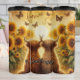Esta é uma ilustração emocionante e caprichosa que apresenta dois adoráveis, fofos bezerros de terras altas por trás, voltados para um campo de girassóis e um sol brilhante e brilhante. A cena é cercada por borboletas, e a palavra "para sempre" é escrita em uma fonte de script acima. A imagem inteira exude um senso de calor, amor e beleza natural.