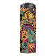 Design de patchwork boêmia vibrante com mandalas intricadas, motifs paisley e elementos florais ornamentais. Esse padrão combina cores ousadas, como laranja, lacre, magenta e preto, criando um tumbler térmico exótico e decorativo para atividades ao ar livre. Ideal para aqueles que amam a estética do bô, da etnia e da arte popular.
