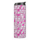 This thermal tumbler features a striking geometric block pattern in alternating shades of pink, magenta, and white, creating a dynamic, contemporary design with a subtle three‑dimensional effect.