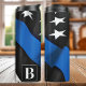 Thin Blue Line Thermal Tumbler - design de bandeira americana em cores da Polícia, design angustiado. Este batedor de polícia personalizado é perfeito para presentes de policial, favoritos para festas de aposentadoria da polícia, festas de formatura de polícia ou para celebrar seu policial de polícia favorito. Perfeito para todos os agentes da polícia, polícias, família e apoiantes da polícia. Personalize com o nome. COPYRIGHT © 2020 Judy Burrows, Black Dog Art - Todos Os Direitos Reservados. Policial Personalizado Tumbler Térmico Thin Blue Line