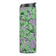 Pretty purple floral pattern with green leaves, popular ornamental design.