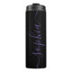 Add a touch of royal elegance to your day with this sleek black Thermal Tumbler featuring a vibrant purple script font. This modern aesthetic is perfect for those who appreciate a sophisticated, minimalist look for their daily hydration needs. The Thermal Tumbler is fully personalizable, allowing you to easily replace the text with your own name or a custom word to create a unique accessory. Engineered to keep your beverages at the ideal temperature for hours, it is a functional and stylish essential for the office, gym, or on the go. This Thermal Tumbler makes a thoughtful custom-made gift for anyone who values high-quality design and personal flair.
