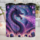 Esta ilustração mágica apresenta um dragão majestoso com escalas em tons de roxo e azul, respirando um fluxo de fogo vibrante rosa e roxo. O dragão é rodeado por símbolos místicos, órbitas brilhantes, e um anel de crânios envolto em chamas. O fundo é um céu noturno escuro e estrelado, melhorando a atmosfera mágica e poderosa da cena.