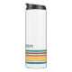 Sip in style with this Retro Monogrammed Minimalist Stripes Thermal Tumbler. Featuring bold blue, turquoise, yellow, orange, and terracotta stripes, it blends vintage charm with modern, minimalist design. Personalize it with your name or initials for a unique, standout touch that makes it truly yours. Perfect for keeping drinks cold, this custom tumbler is ideal for gifting or adding a stylish, personal touch to your daily routine.