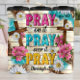 Este gráfico vibrante apresenta a mensagem de uplifting "PRAY on it / PRAY over it / PRAY through it" em letras em negrito, colorida e angustiante 3D. Duas cruzes rústicas de madeira adornadas com margaridas brancas flanqueam o texto, cercadas por flores cor-de-rosa e verde. Um fundo de madeira angustiado com sotaques sutis de impressão leopardo cria uma design única e inspirada na fé.