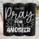 Esta é uma design gráfica com a frase "Rezar um pelo outro" em uma fonte estilizada e em camadas contra um fundo sólido e leve de cinza. A palavra "Rezar" é reproduzida numa fonte grande e elegante, enquanto "PARA UM" é colocada dentro de uma faixa decorativa com estrelas. A palavra "OUTRO" está em uma fonte arrojada e achatada na parte inferior. O design global tem uma estética confortante e inspiradora, adequada para uso em uma variedade de produtos.