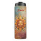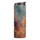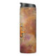 Copo térmico legal com ilustração de arte digital gerada por IA de um rosto de sol cósmico dourado em um fundo celeste abstrato. Personalize com nome ou monograma