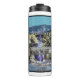 Uma pintura paisagem digital de Vermont cênico. Stowe Mountain sobe acima de Moss Glen Falls, com um céu azul claro como fundo. À medida que a água fria desce para ir abaixo de uma ponte coberta, ela acaba em Warren Falls. Há uma borda preta ao redor da trabalho de arte. Em uma fonte branca há, "Vermont", "Linda Rota 100". E você pode encontrar o ano de estado nas passagens da ponte, parecendo um 1791 gravado. Um peru fica atento à entrada da ponte. Imagem Copyright ©2023 Kimberly J Tilley.