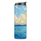 This has an illustration of a sailboat at sunset sailing on the peaceful water done in an impasto oil painting style with ai.