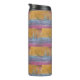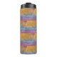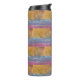 Tumbler térmico mostrando três veleiros, bravando os mapas brancos de águas oceânicas azuis, com um céu ouro.