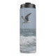 Tumbler térmico com foto de um carregando de gaivota sobre o oceano Atlântico.